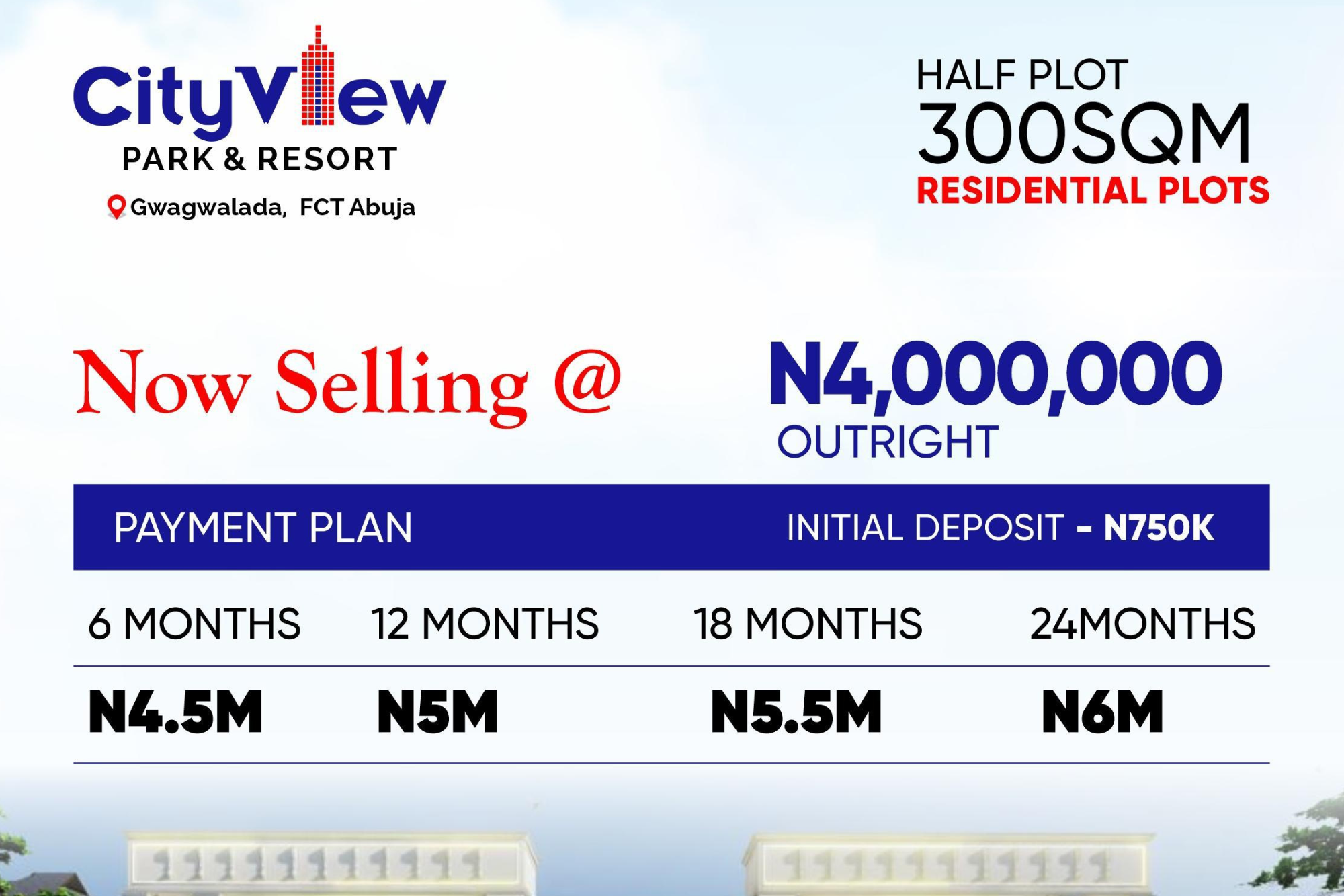 Introducing City View Park and Resort, a premier residential development situated in Gwagwalada, Abuja. Nestled atop a hilltop, this exquisite estate provides panoramic views of the city skyline, harmonizing tranquility with urban elegance.                                                                                                                                Â